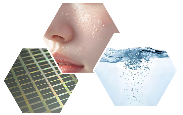 0.1秒で過熱スチームを瞬間冷却する半導体技術から、特異な効能を持つ水分子集団 Single Active Water (SA水) が誕生しました。